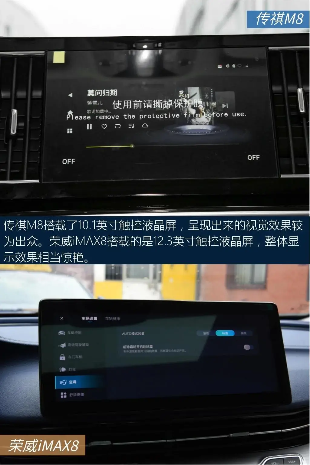 下面就为大家总结一下两车的表现。传祺M8配备分段式电动天窗,车内通透,光效果不错,能给后排乘客带来更愉悦的乘坐体验。内饰呈现出干净的设计风格,虽说亮点不多,但也符合当下主流的审美标准。后排座椅方面,荣威iMAX8第二排空间的表现算是不错了,第三排空间表现也较为理想。中控屏尺寸是12.3英寸,中控屏使用悬浮式的设计,屏幕尺寸较大,科技感非常强烈。这两款车各有各的风格,不知道你会怎么选?